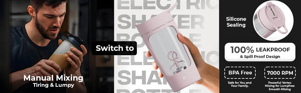 Cleaning is effortless. Simply add water with a drop of soap, press the button, and the shaker will self-clean within seconds. The BPA-free material also ensures no residual odors or stains remain after use.