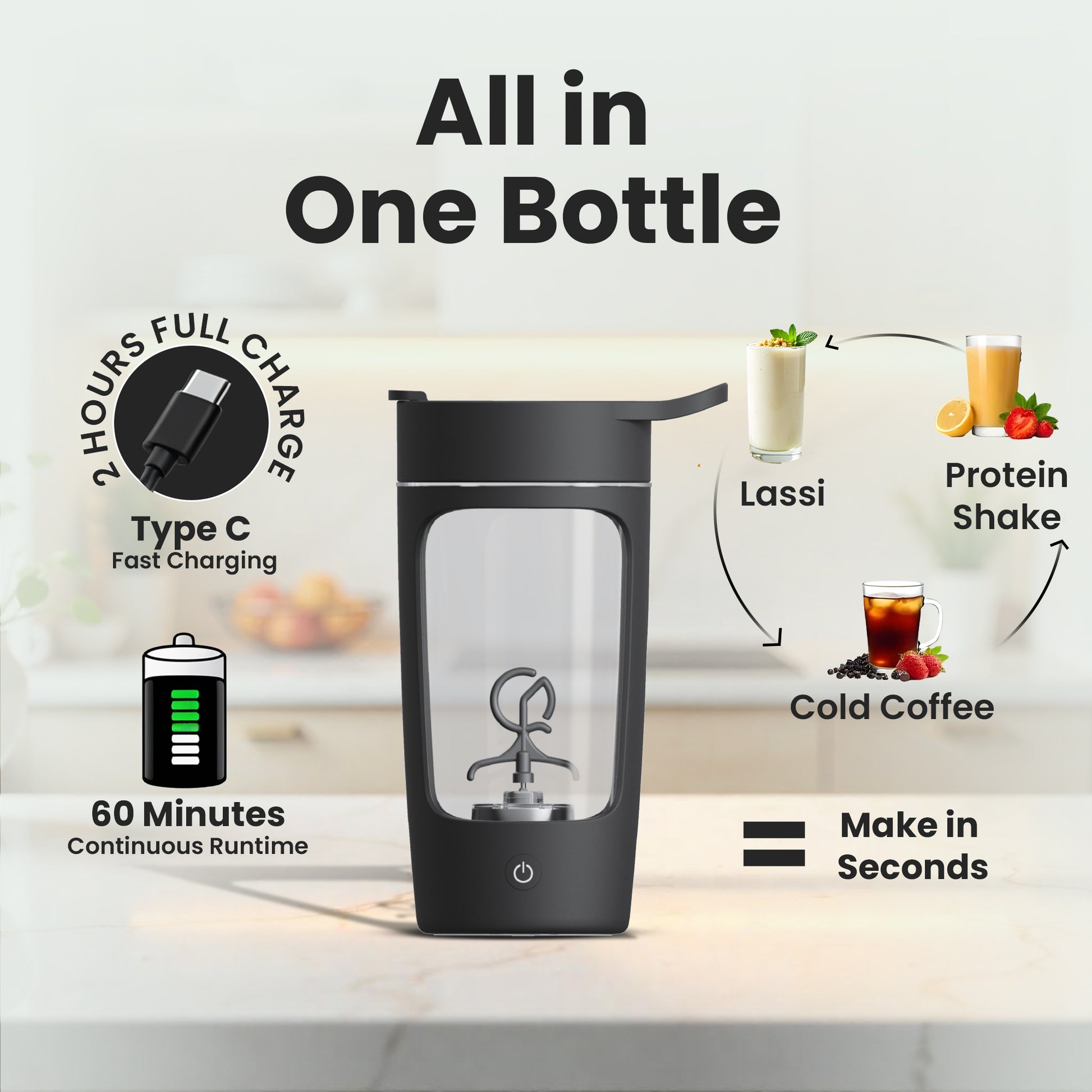 We’ve engineered the shaker to operate quietly and efficiently. It produces minimal sound while blending, making it suitable for use at home, in the office, or at the gym without causing disturbance.