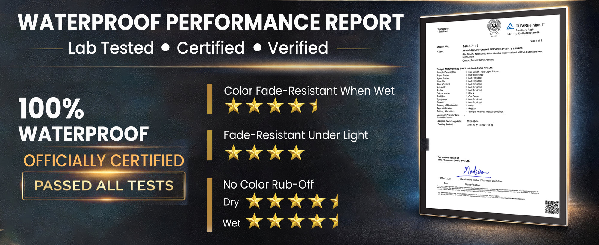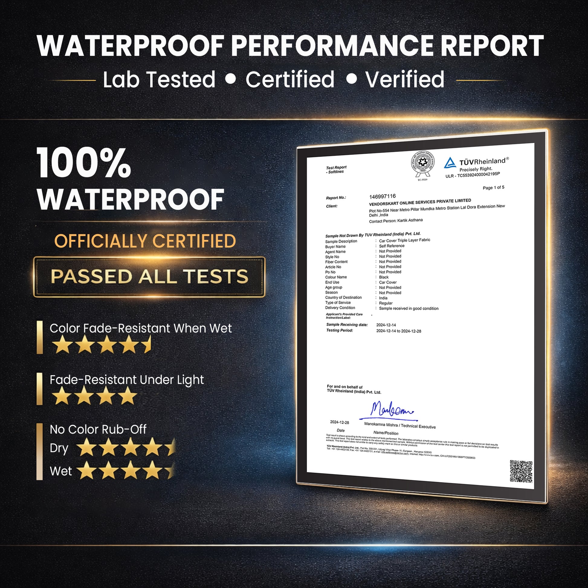 Yes. Autofy HYDRA Bike Cover is 100% waterproof and lab tested. It features dual waterproof coating and thermally sealed seams to prevent water seepage, even during heavy rainfall. Verified lab reports are available in the product images.