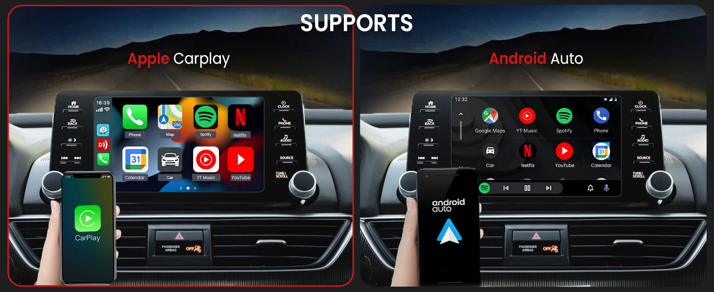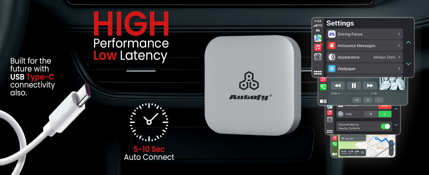 Compatible with most cars having factory-fitted wireless CarPlay or Android Auto. Some aftermarket stereos may not be supported.