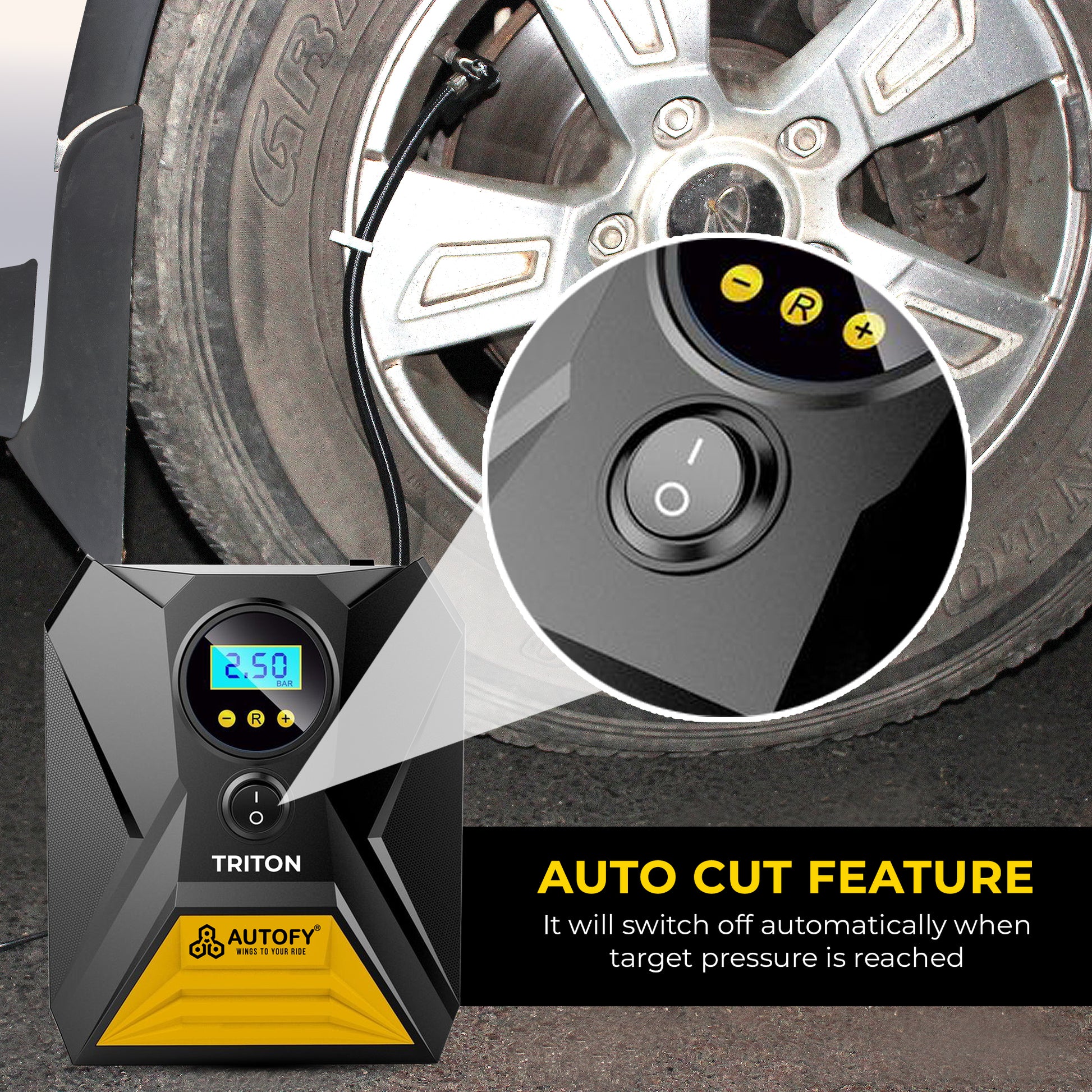 Yes, it has an Auto Cut feature that automatically stops inflation once the set tyre pressure is reached.